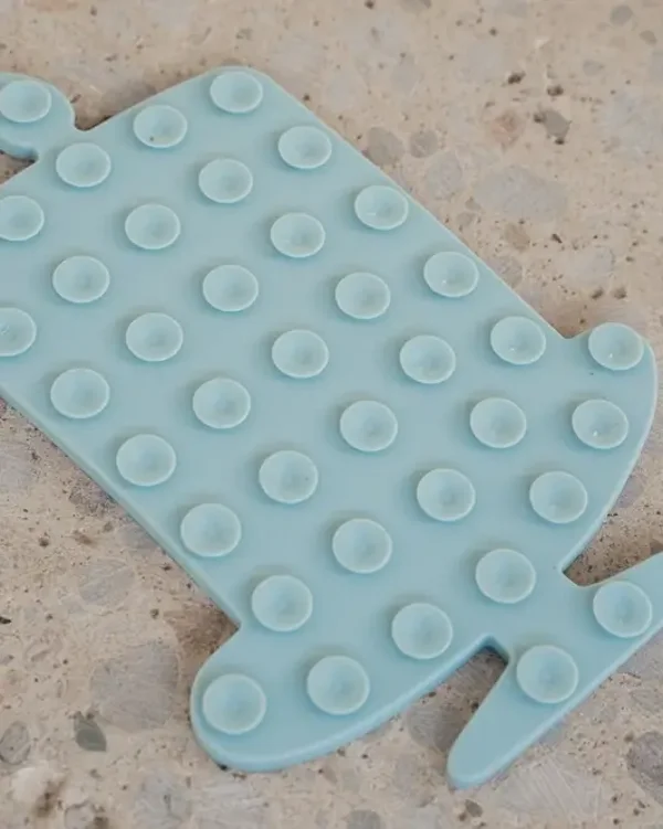 Het enige wat je nodig hebt is een beetje pindakaas, rauwvoer of yoghurt om op de mat te smeren, zodat je huisdier zich kan concentreren op het verwijderen van al het onweerstaanbare smeermiddel van de mat.