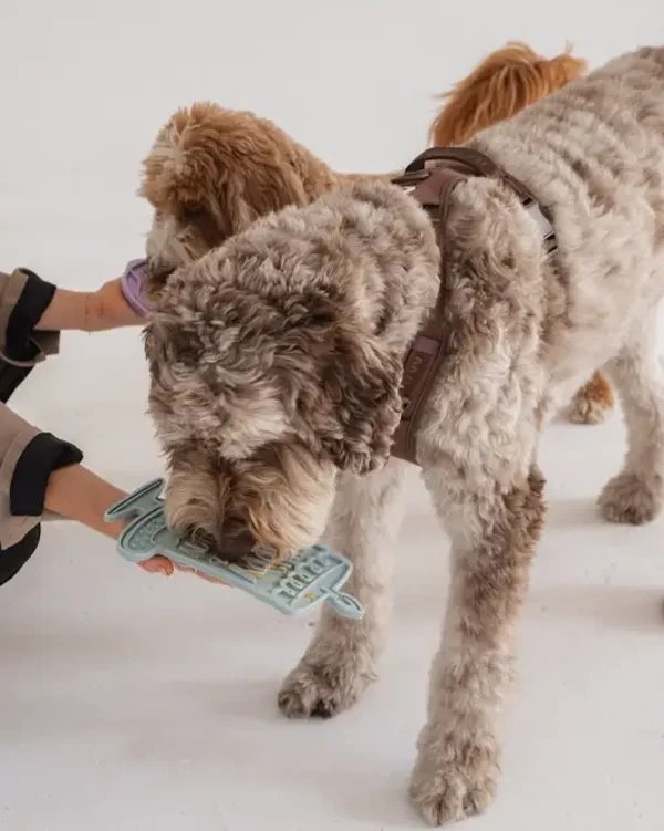 Dexter zegt: „Houd je harige vriend de hele dag bezig met onze kalmerende likmat voor verrijking.
