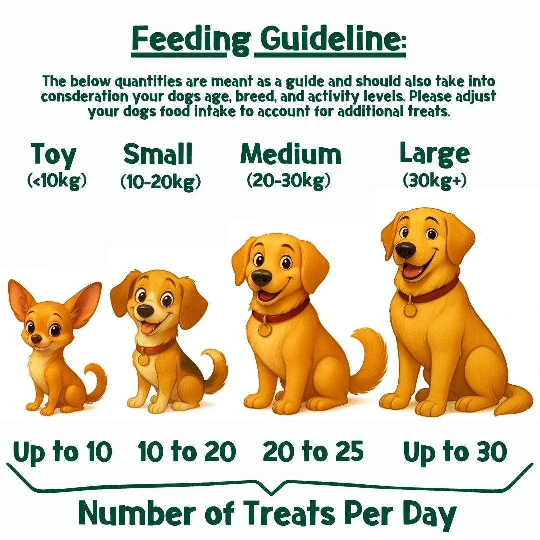 Aanvullende traktaties voor volwassen honden en puppy's ouder dan 8 weken. Niet bedoeld als maaltijdvervanger. Zorg altijd voor drinkwater. 1 stick per dag voor middelgrote honden van 10-25 kg. Voor kleinere honden, breek de stick doormidden.